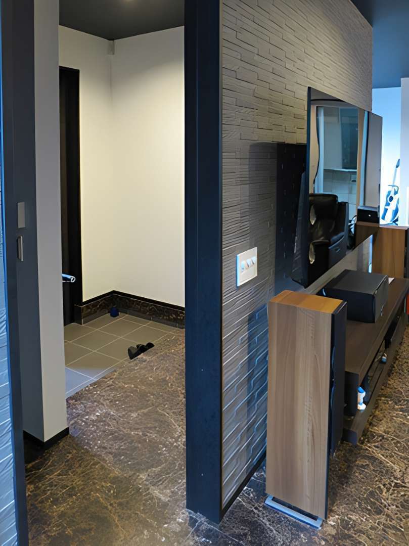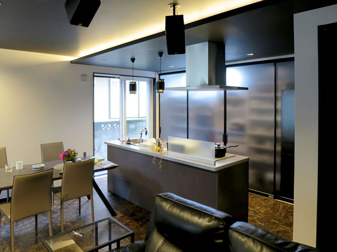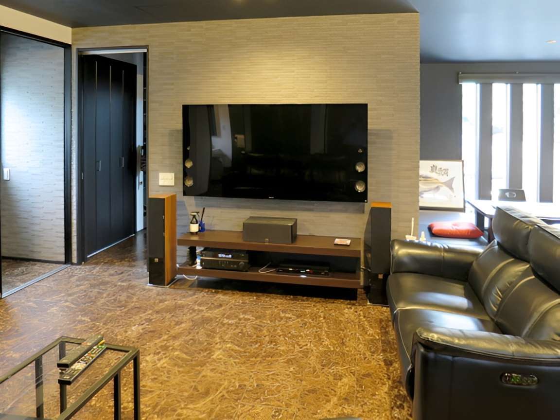 LDKの中心には、開放感あふれるアイランドキッチンを配置。リビングにはアクセントウォールと壁掛けテレビを採用し、高級感を演出しました。さらに、モダンな空間に自然に溶け込む「小上がり和室」のダイニングスペースを設け、くつろぎの時間を豊かにしています。