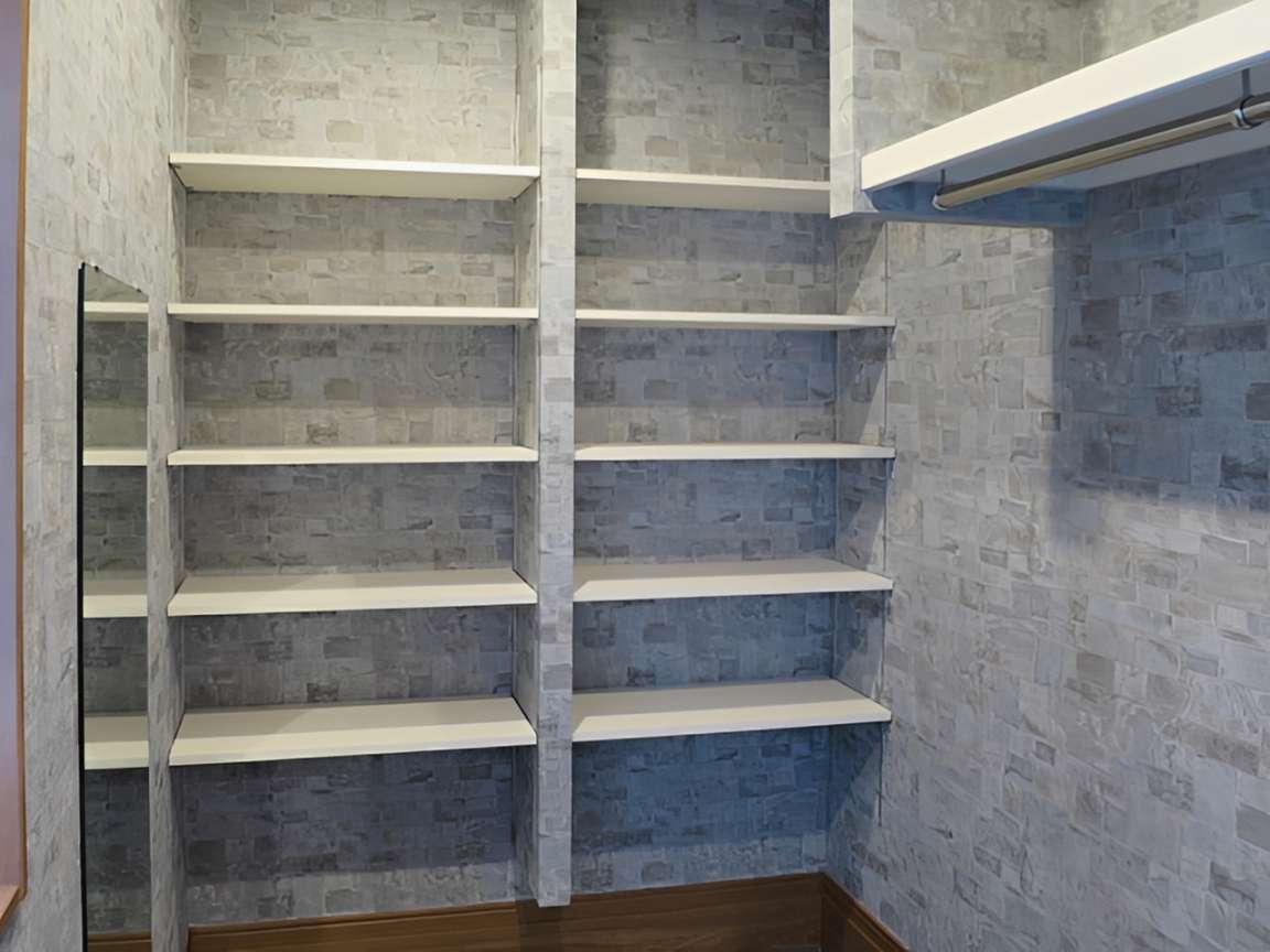 玄関横には、靴だけでなくコートや雨具も掛けられるハンガーパイプ付きのシューズクローク(土間収納)を設置。デザイン性の高い石目調のクロスを採用し、玄関周りを常に美しく、おしゃれに保つ工夫が詰まっています。