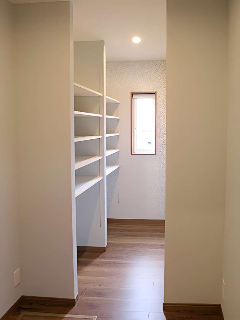 また、キッチン奥のパントリーや大容量のシューズクロークなど、生活動線に配慮した収納も充実。リビングの一角には便利なワークカウンターも設置しています。