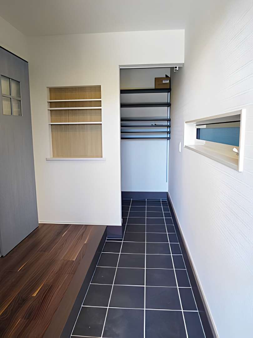 玄関: 収納力に優れたシューズクロークと、お洒落なニッチ棚を設置し、いつでもスッキリとした玄関をキープできます。