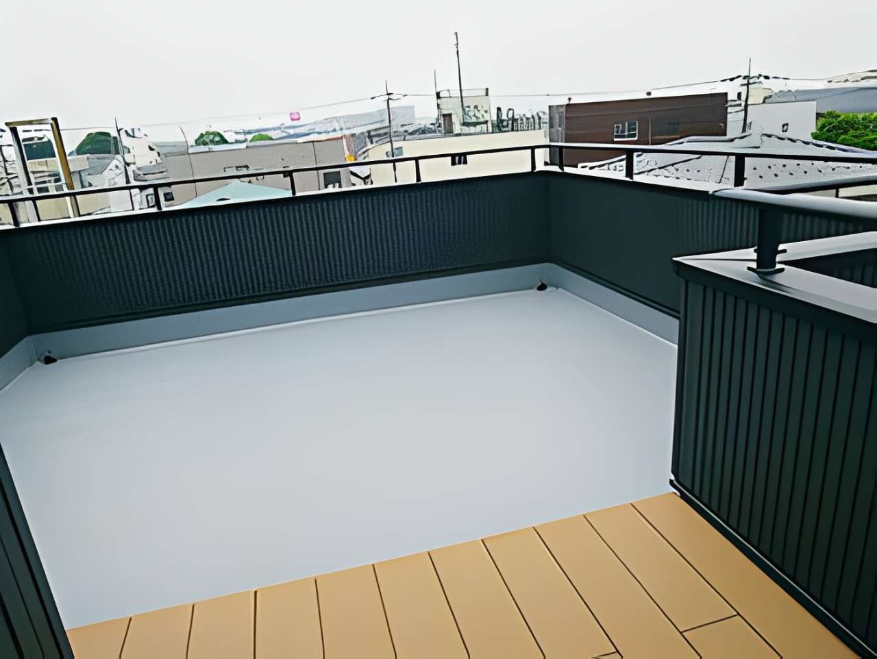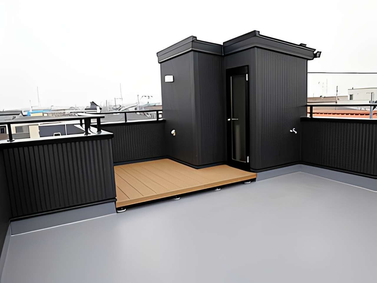 プライバシーを確保しつつ開放感を味わえるこの空間は、週末のBBQやリラックスタイムに最適。外観は黒の縦ラインが映えるモダンなデザインで、街並みの中でも目を引くスタイリッシュな仕上がりとなりました。