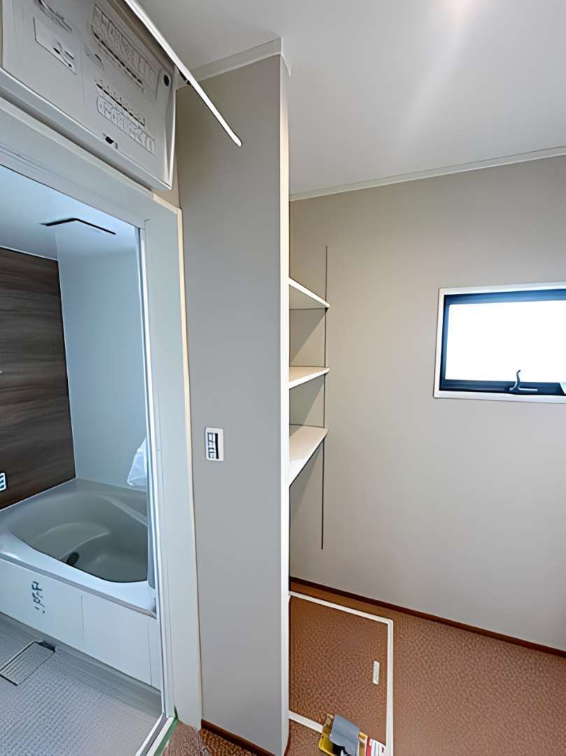 ガレージだけでなく、生活スペースも充実しています。リビングには、対面式のキッチンがあり、家族との会話を楽しみながら料理をすることができます。また、各所に収納スペースが豊富に設けられており、すっきりと暮らすことができます。