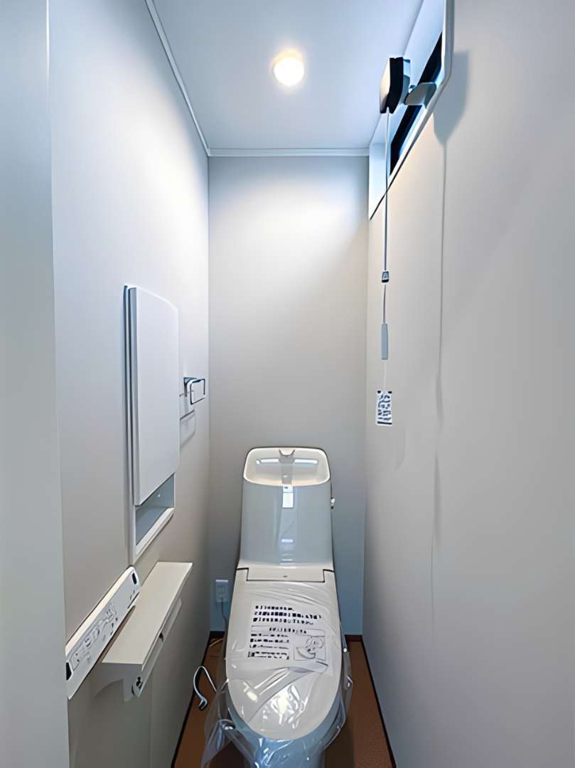 スリムな手洗い器を完備。機能的でスタイリッシュなトイレ空間